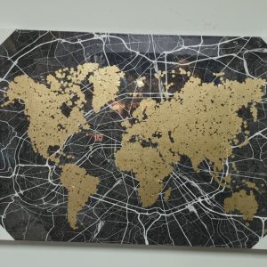 Tela Preta Com Riscos Brancos e Mapa Mundo Dourado
