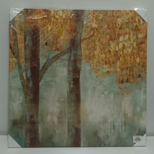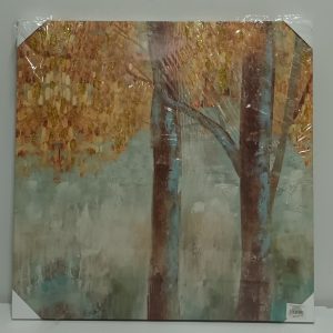Tela Quadrada 2 Troncos de Árvores com Folhas Acobreadas e Douradas Dir