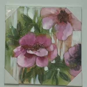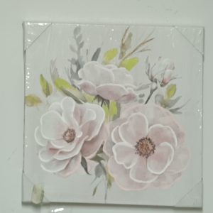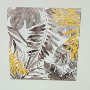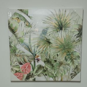 Tela Quadrada Branca com Folhas Verdes e Douradas e Antúrios Rosa