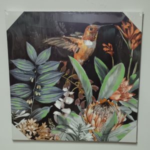 Tela Quadrada Preta Com Pássaros e Flores Coloridos