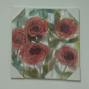Tela Rosas Vermelhas/Rosa com Folhas Verdes e Folhas Turquesa