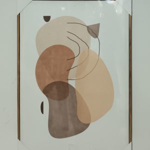 Tela Serigrafia Branca com Figuras Tons Pastel e Moldura