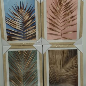 Conjunto 4 Telas Folhas Azul/Rosa/Verde/Castanho com Moldura Madeira Clara€51.80