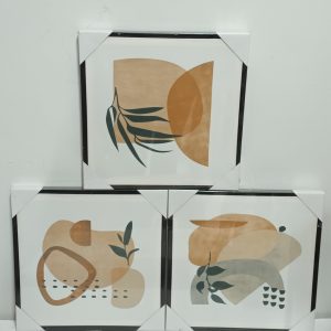 Conjunto 3 Telas Serigrafia Tons Bege/Laranja/Verde com Moldura Preta€59.70