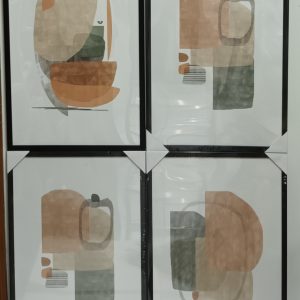 Conjunto 4 Telas Abstrata Serigrafia Tons Claros com Moldura Pre€79.80