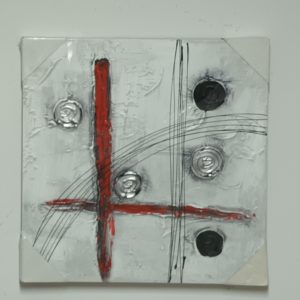 Tela Abstrata Branca Com Traço Vermelho e Bolas Pretas e Prata€29.95