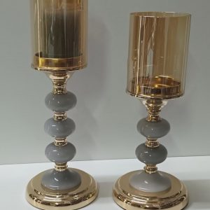 Castiçal Dourados C/ Bolas Vidro Cinzentas Grd
