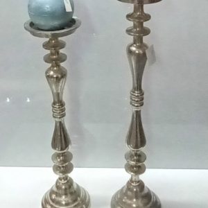 Castiçal Prateado Chão Com Copo Vidro Pq