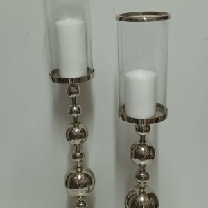 Castiçal Prateado Chão Com Copo Vidro Grd