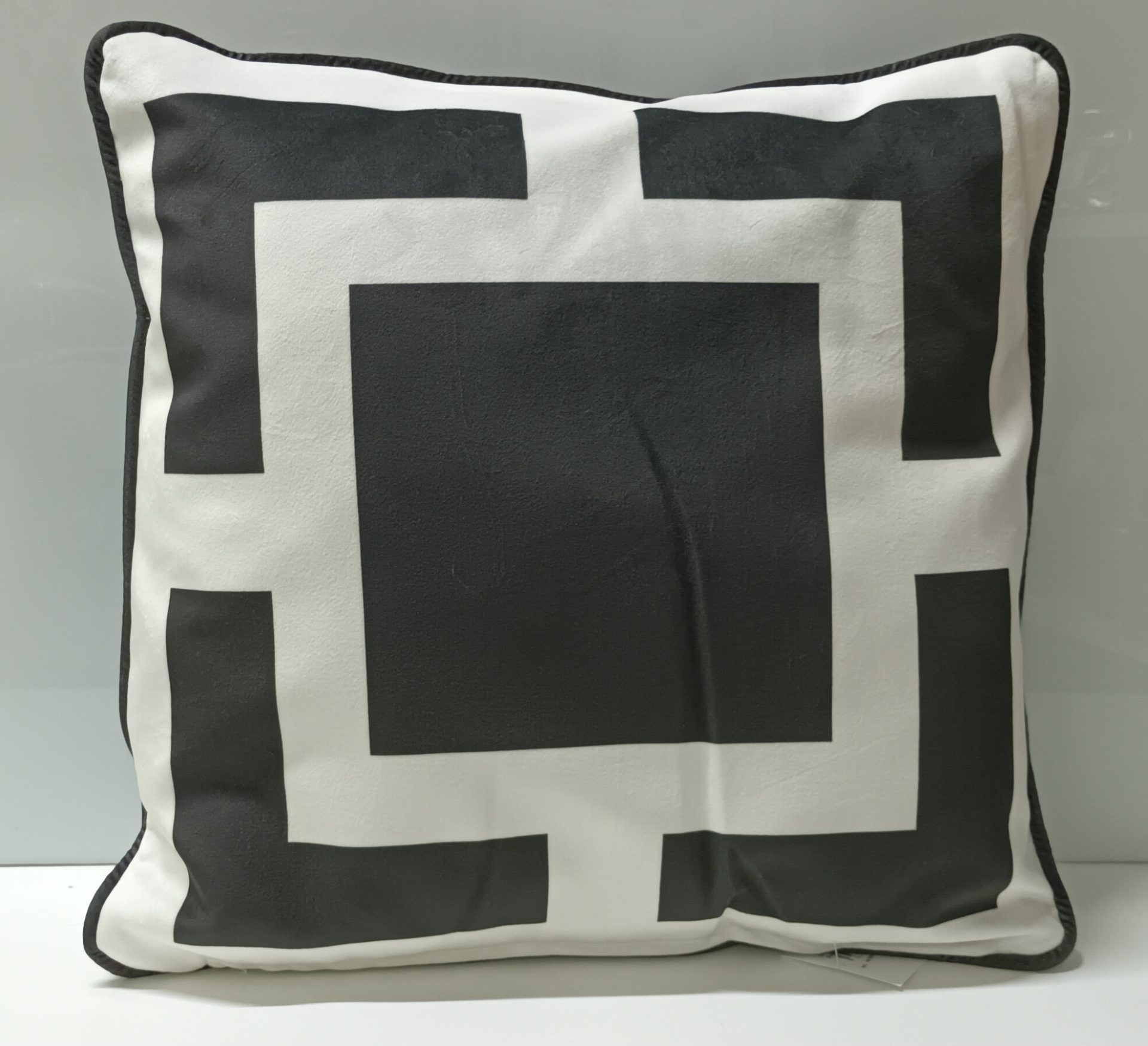 ALMOFADA BRANCA COM QUADRADO PRETO COM ENCHIMENTO 45X45
