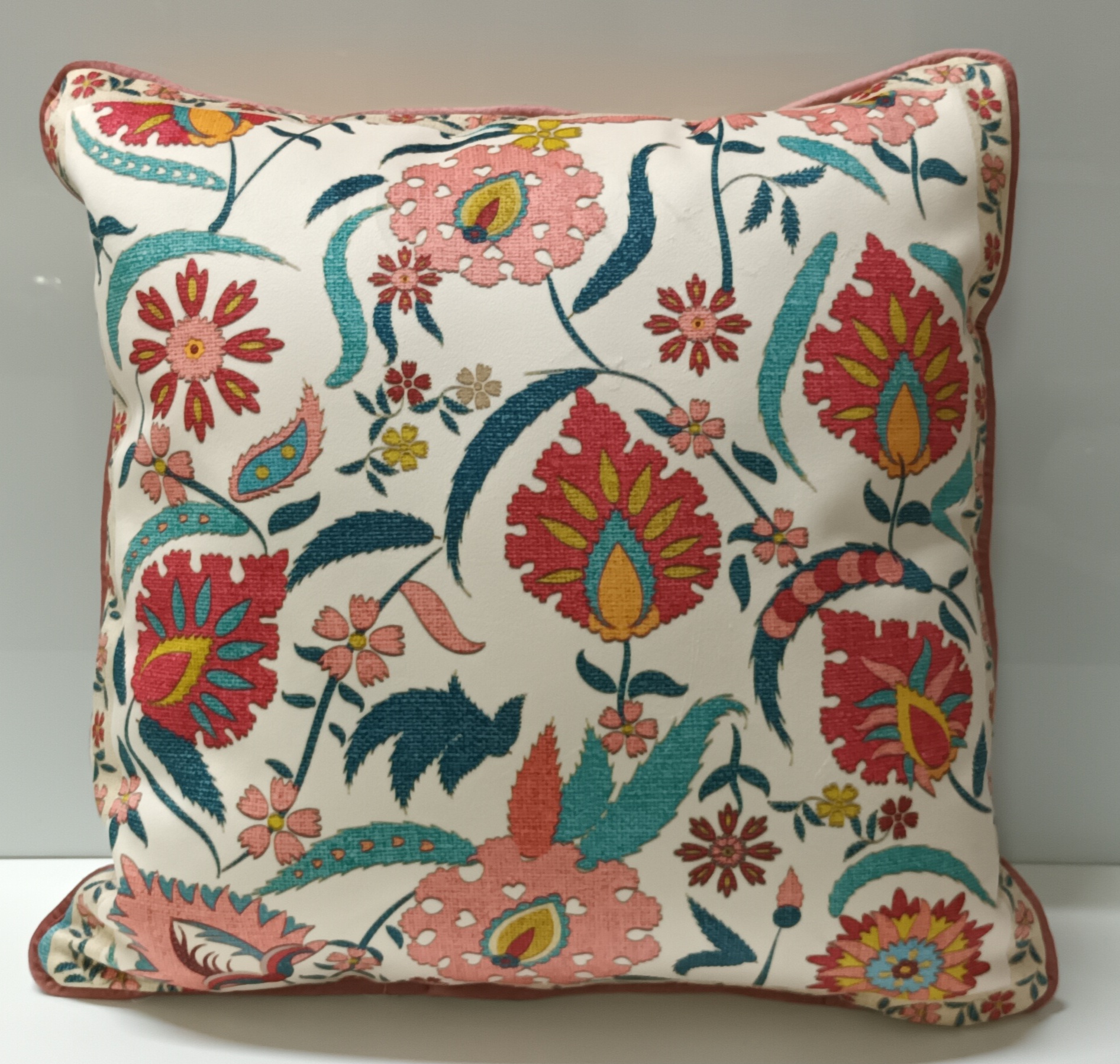ALMOFADA COM FLORES DA PARTE DA FRENTE, POR TRAS AMARELA COM ENCHIMENTO 45X45