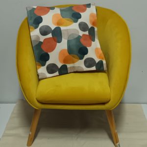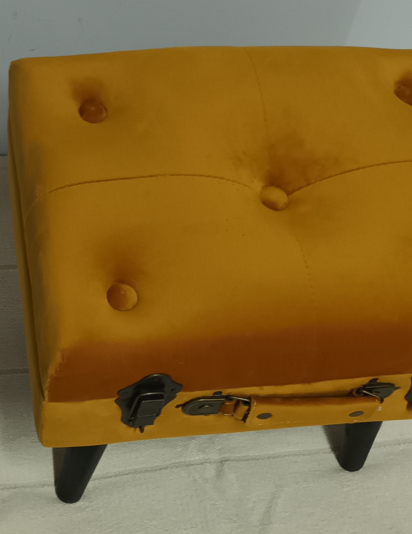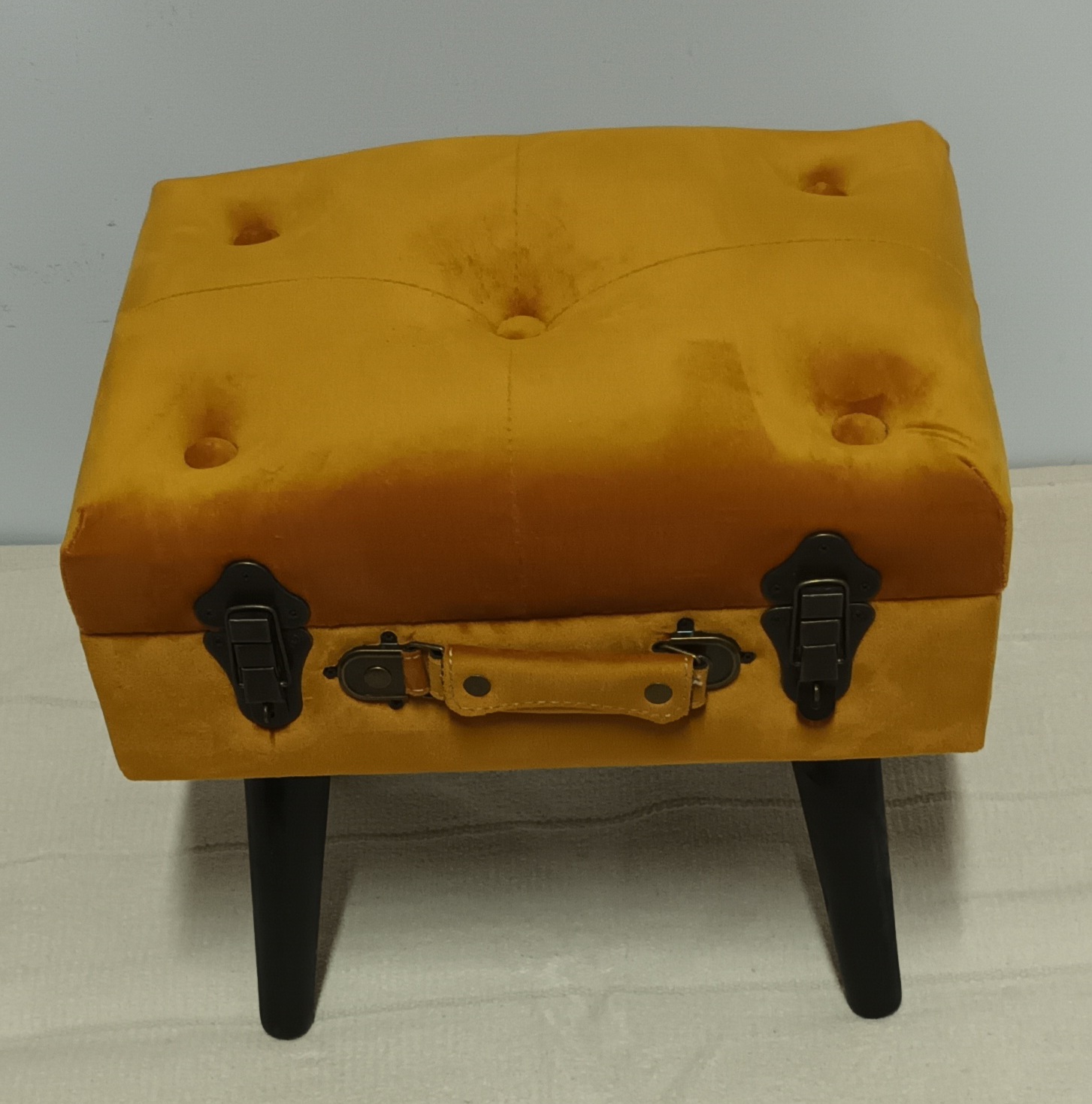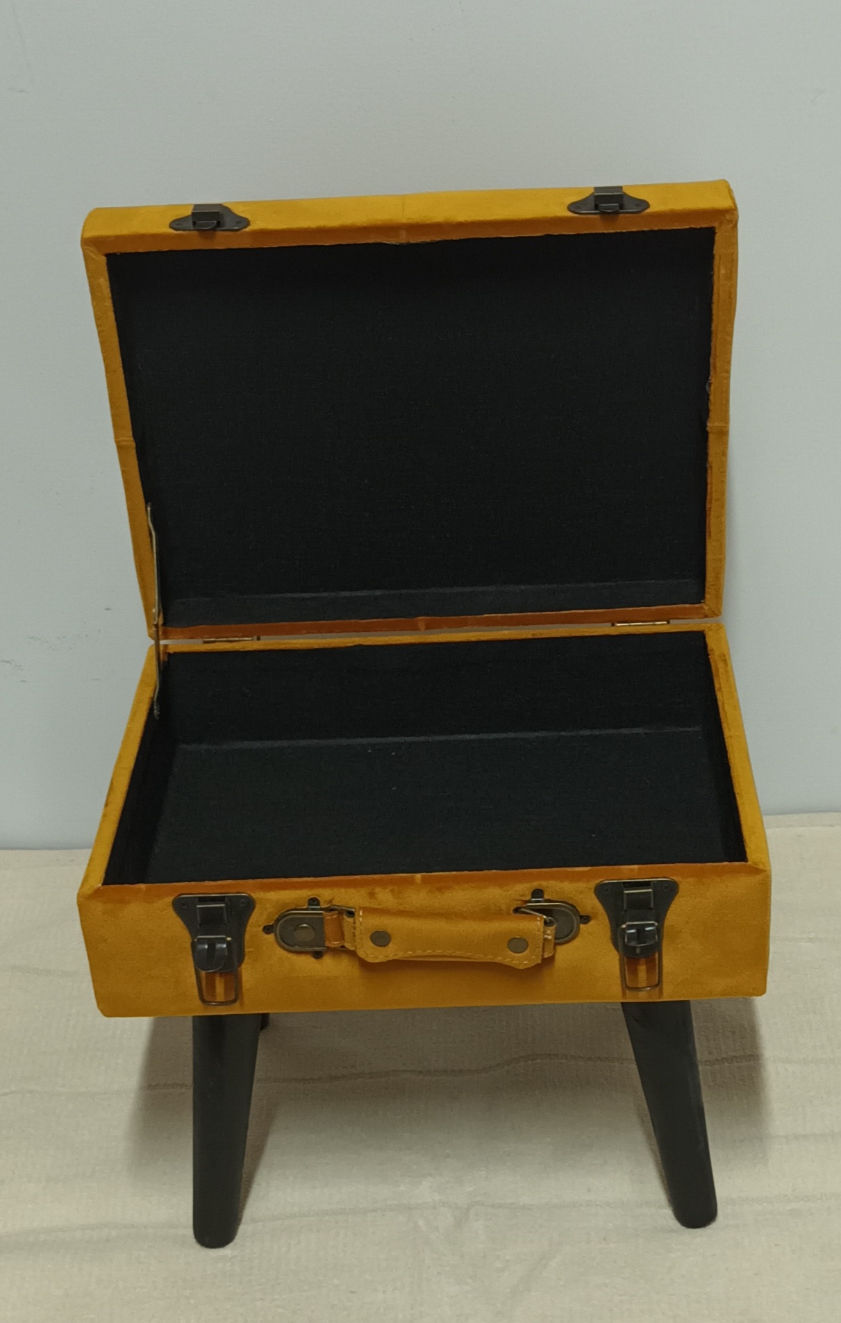 Baú Amarelo Veludo com Pernas Madeira Pretas 40*30*40cm
