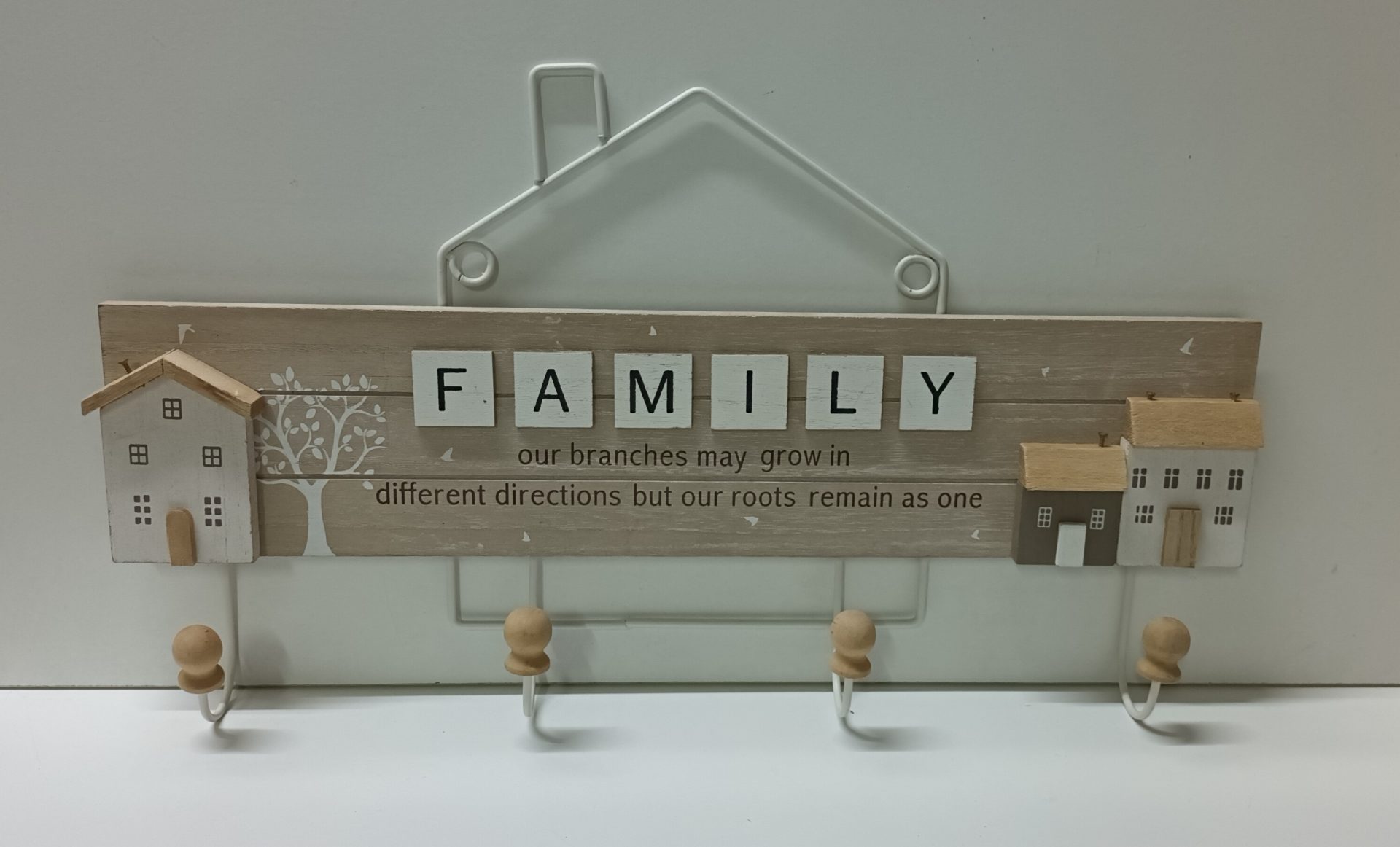 Cabide Parede Madeira com Ferro Branco “Family” 45*27cm