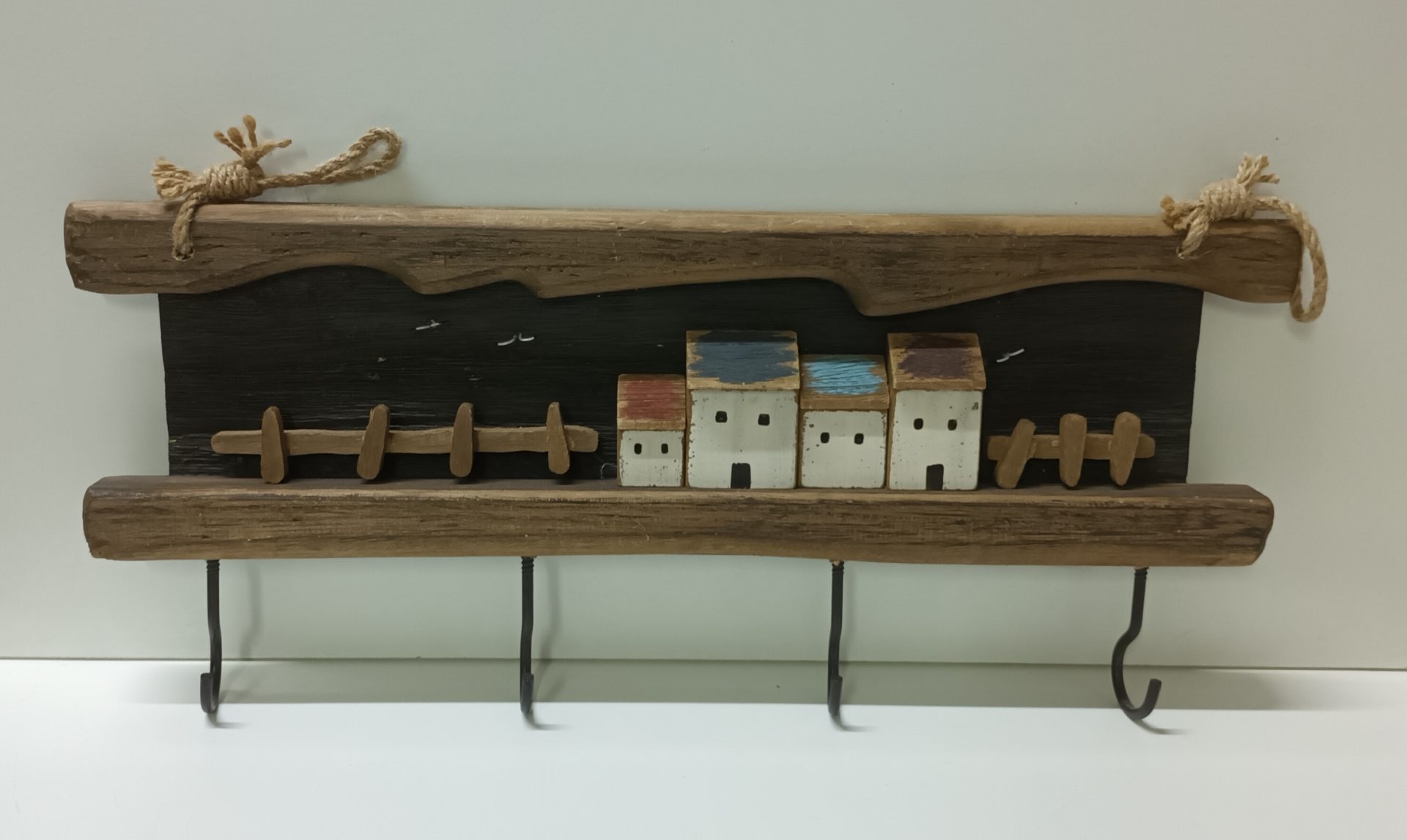 Cabide Parede Madeira Escura com Casas 53*19cm