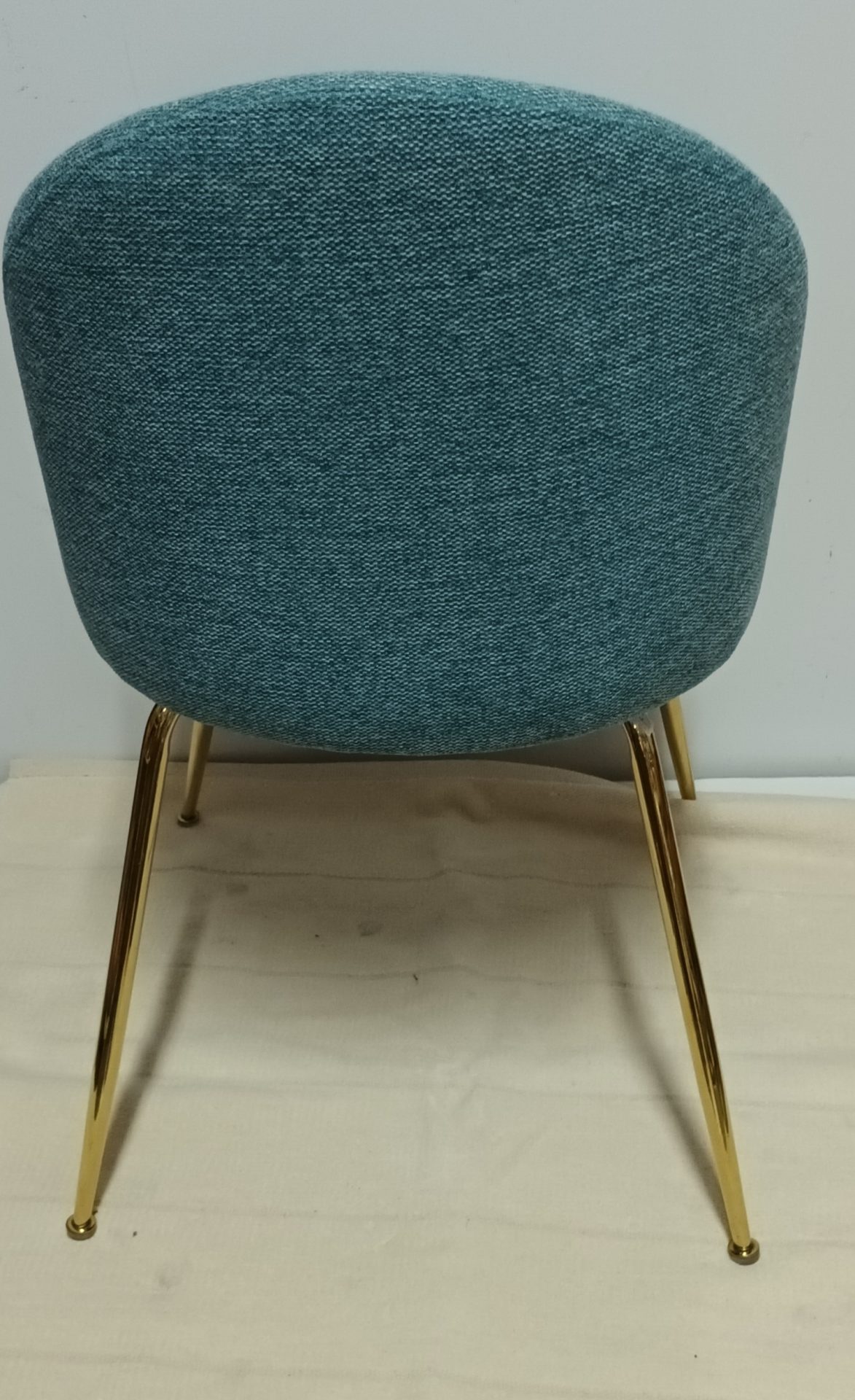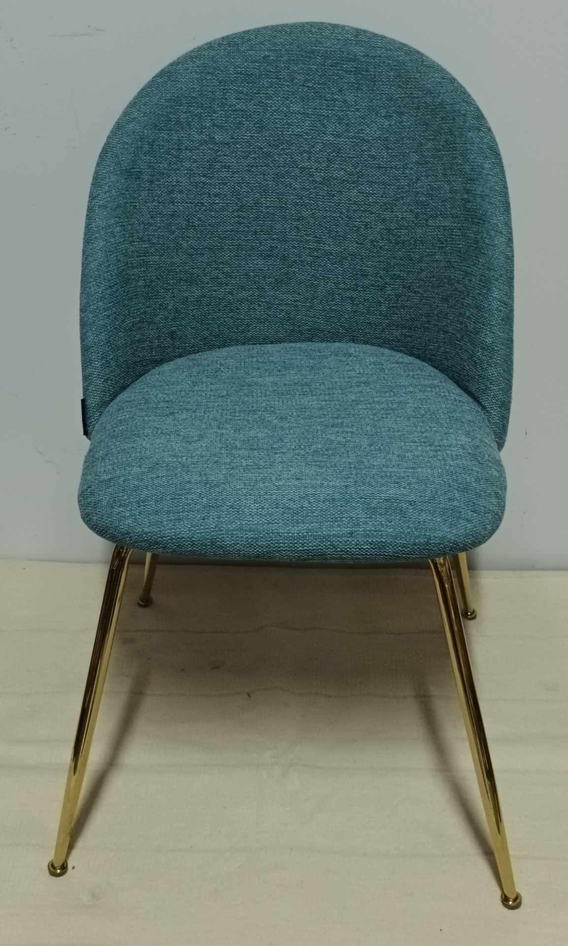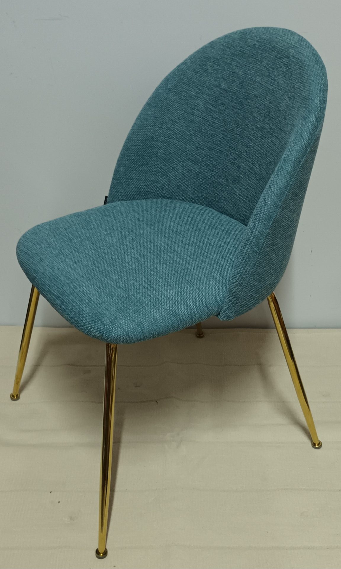 Cadeira Linho Azul com Pernas Douradas Metal 80*47*43cm