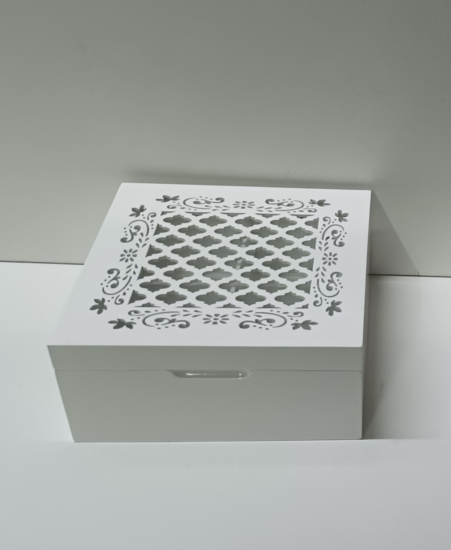 CAIXA DE CHÁ BRANCA COM 4 DIVISOES