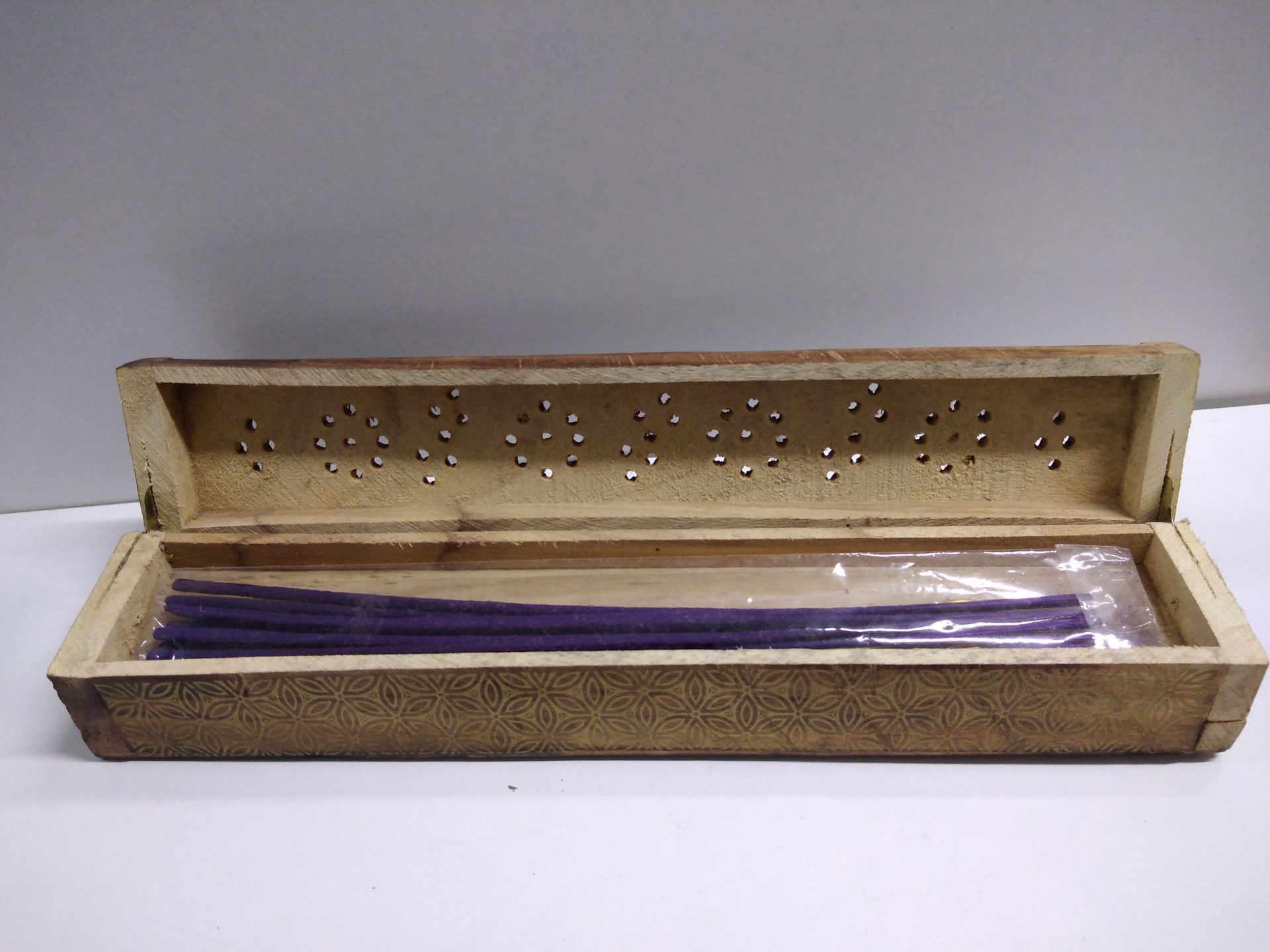 Caixa de incenso de madeira com 10 palitos de incenso French LAvender e Honey Rosa e Black Ouclh
