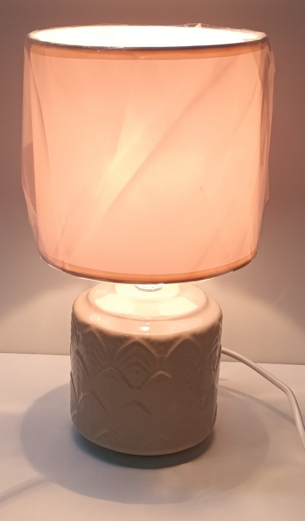 Candeeiro Base loiça Bege com Abajour Tela Bege 29*15cm