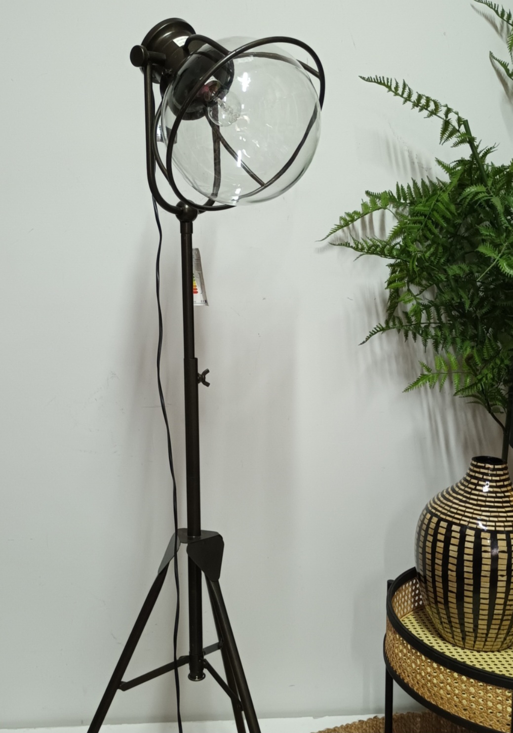 Candeeiro Chão Metal Preto com Bola de Vidro