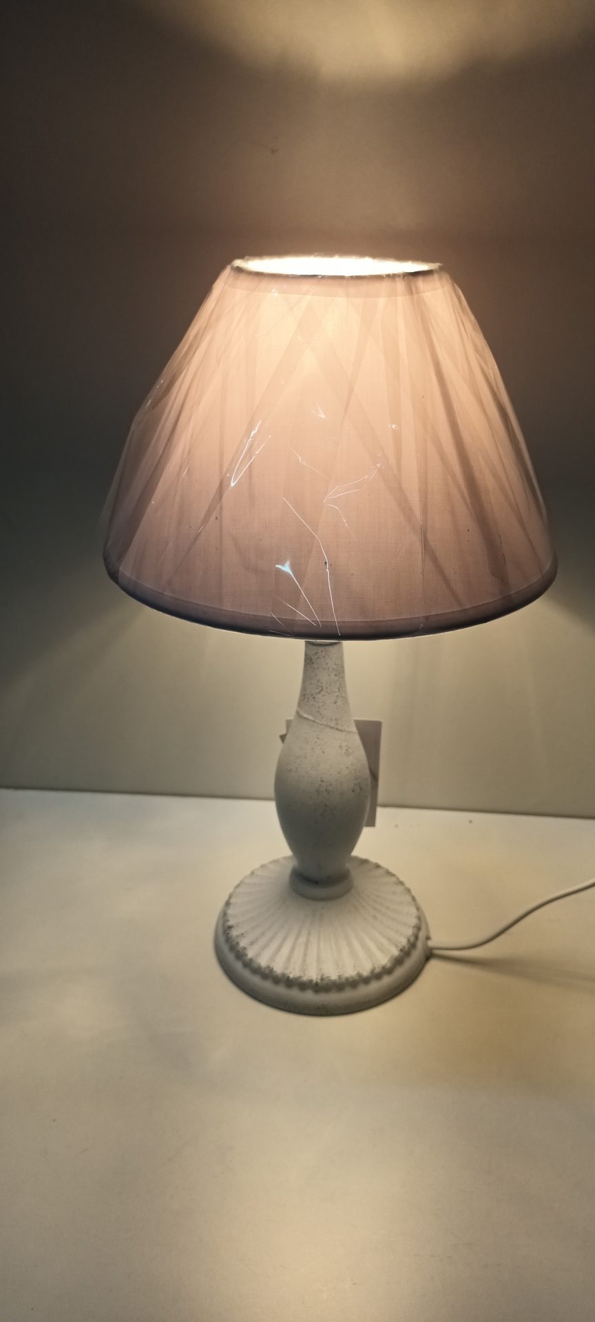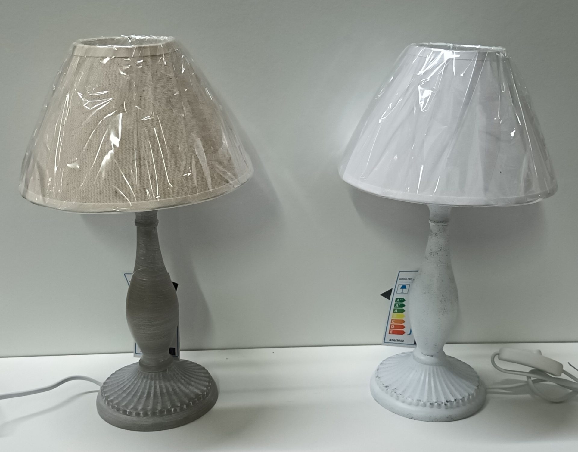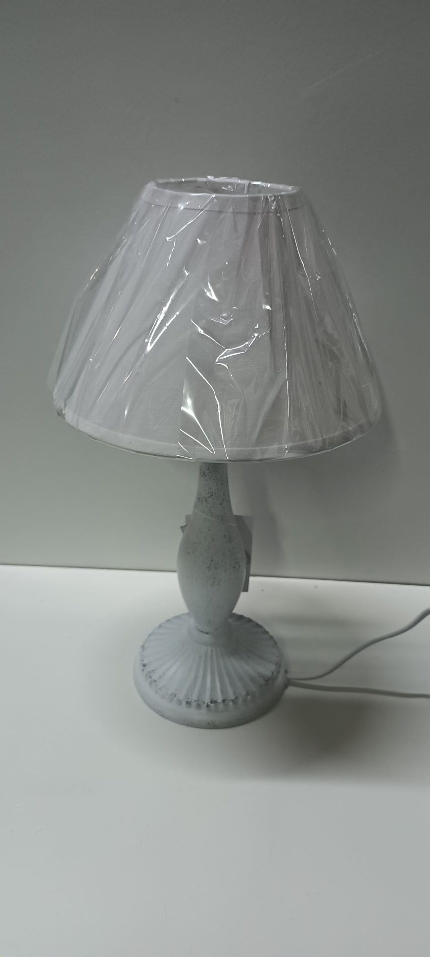 Candeeiro Pé Metal Branco c/ Abajour Cónico Tecido Alinhado Branco 34*20 Cm