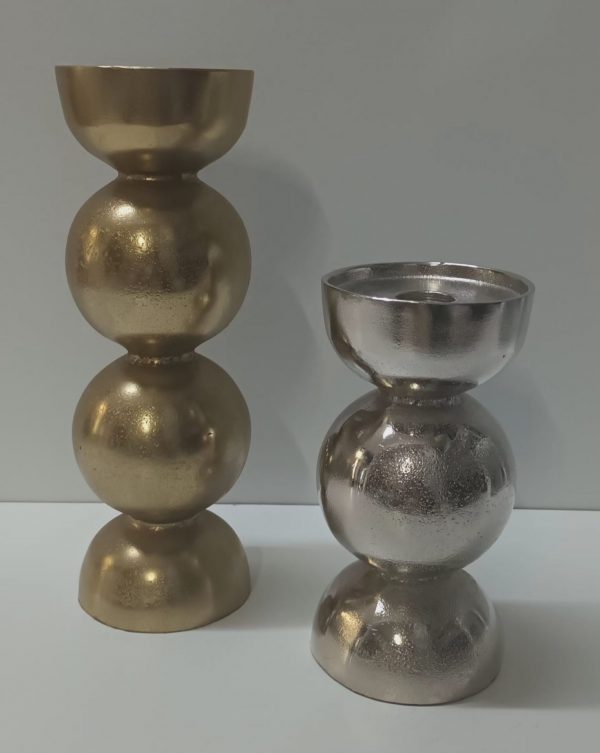 Castiçal Metal Prateado Bolas Pq 16*8 Cm