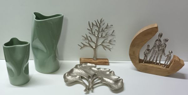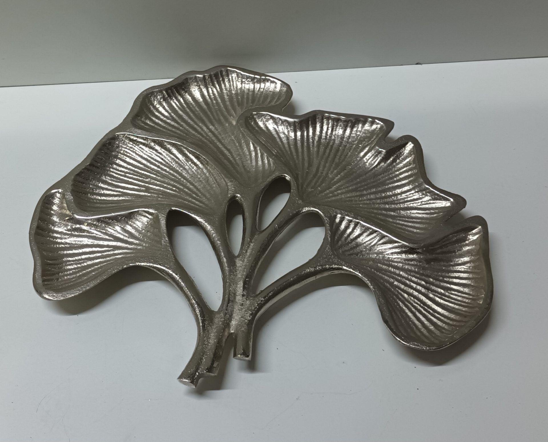 CENTRO DE MESA FOLHAS EM ALUMINIO PRATEADO 20X30CM