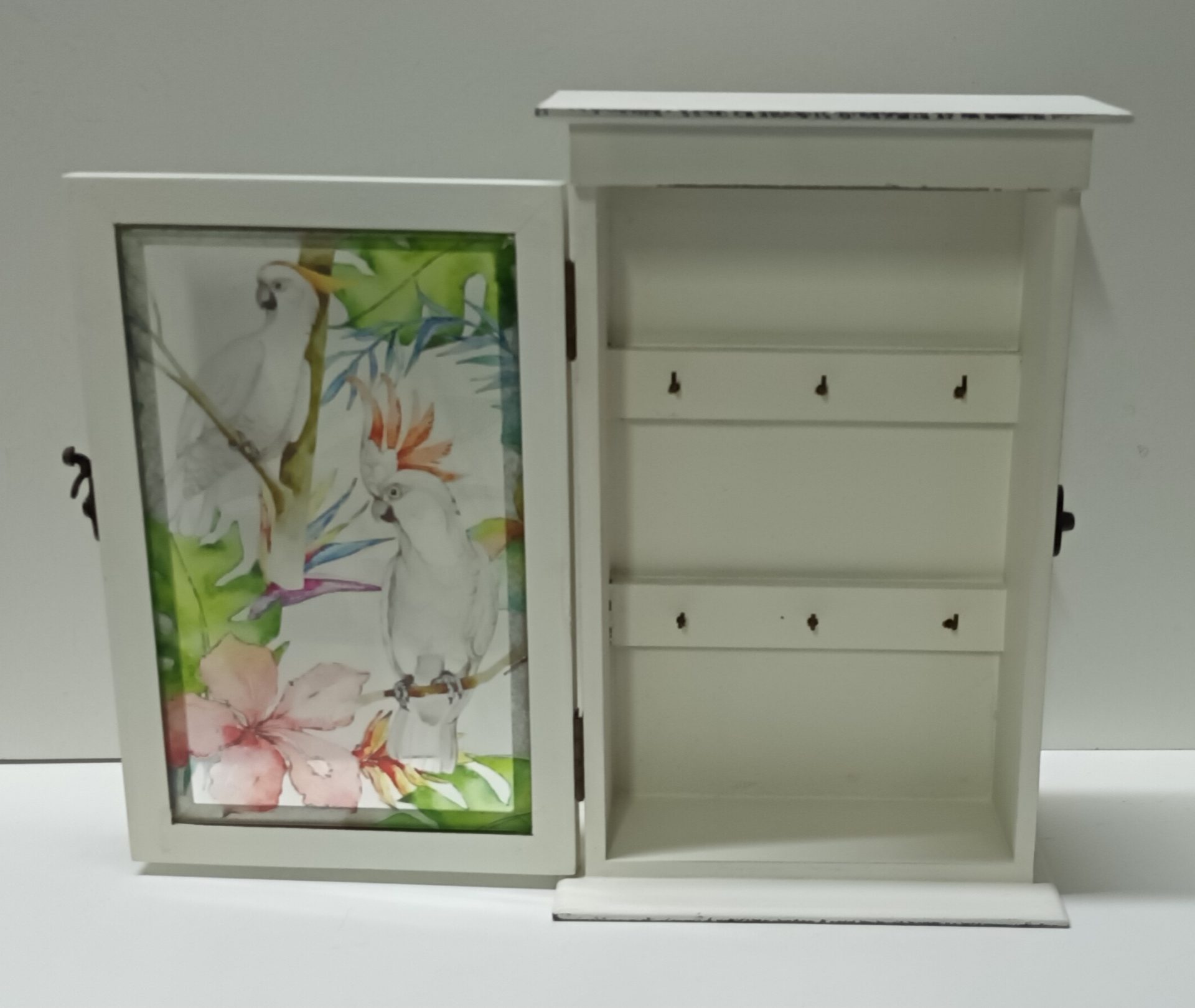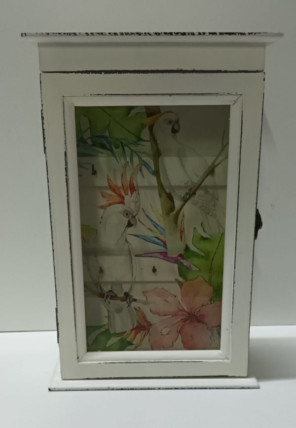 CHAVEIRO COM PAPAGAIOS EM MADEIRA 20X30CM