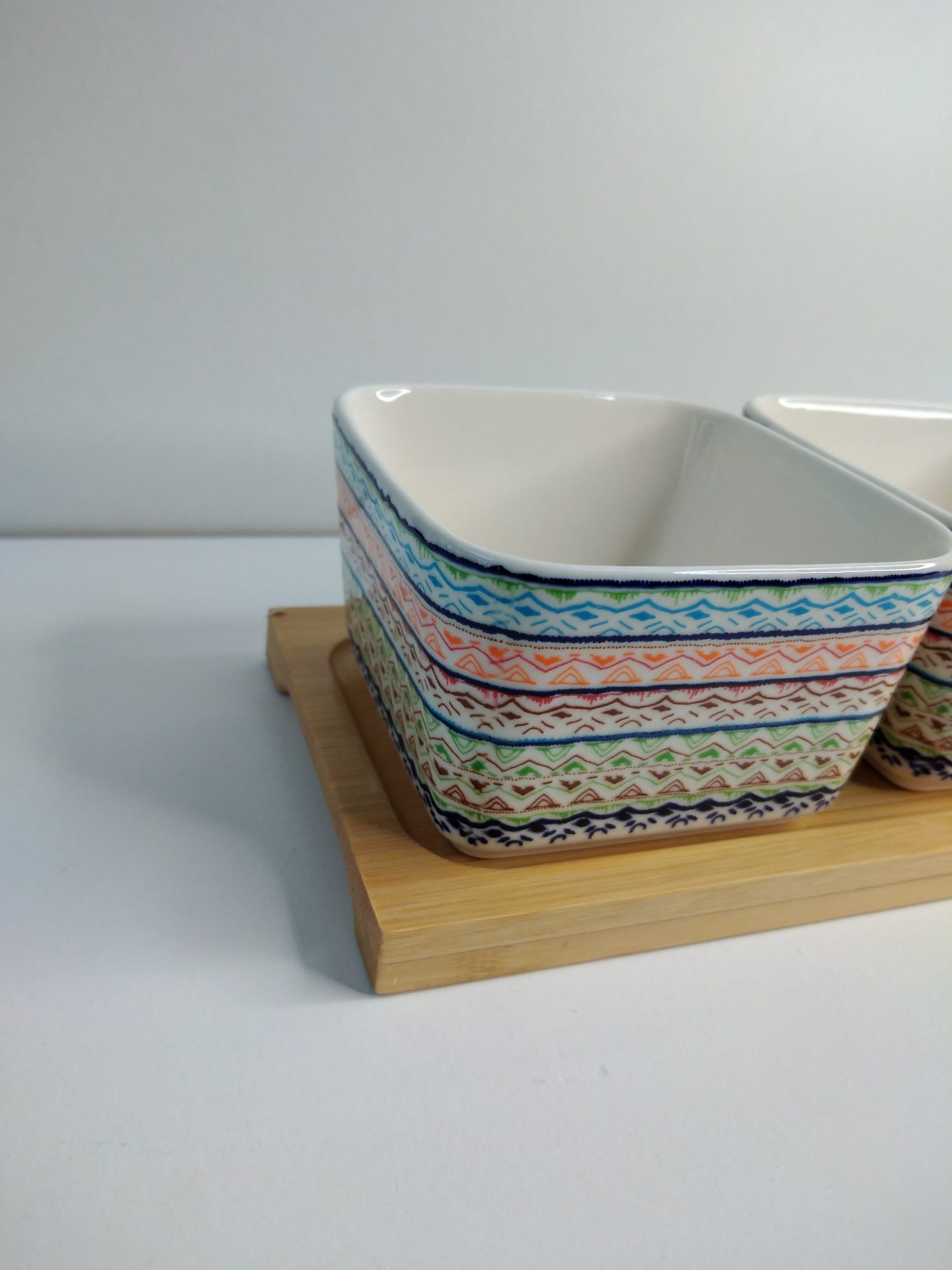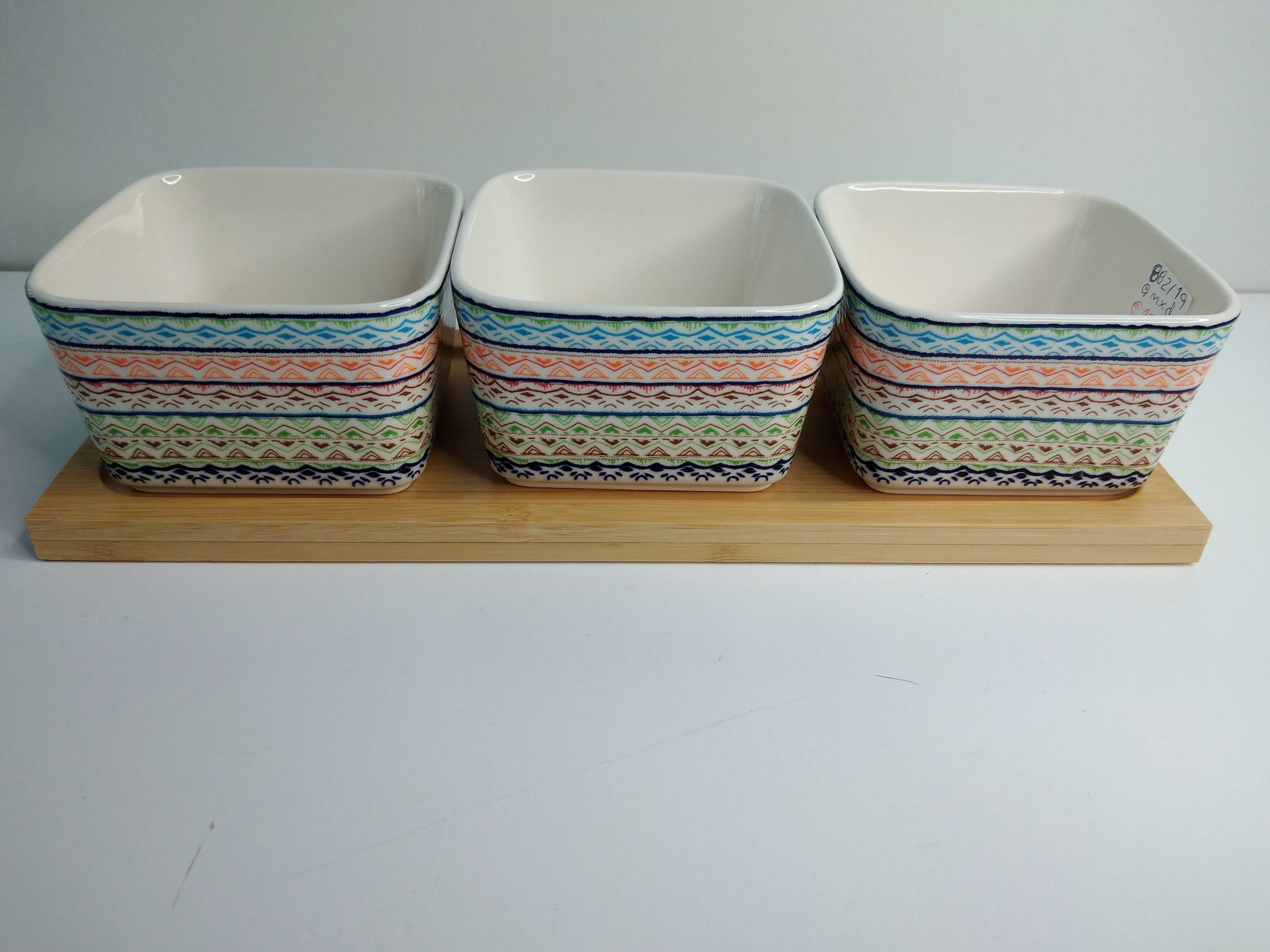 Conj. 3 Taças de Porcelana e Bambu