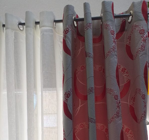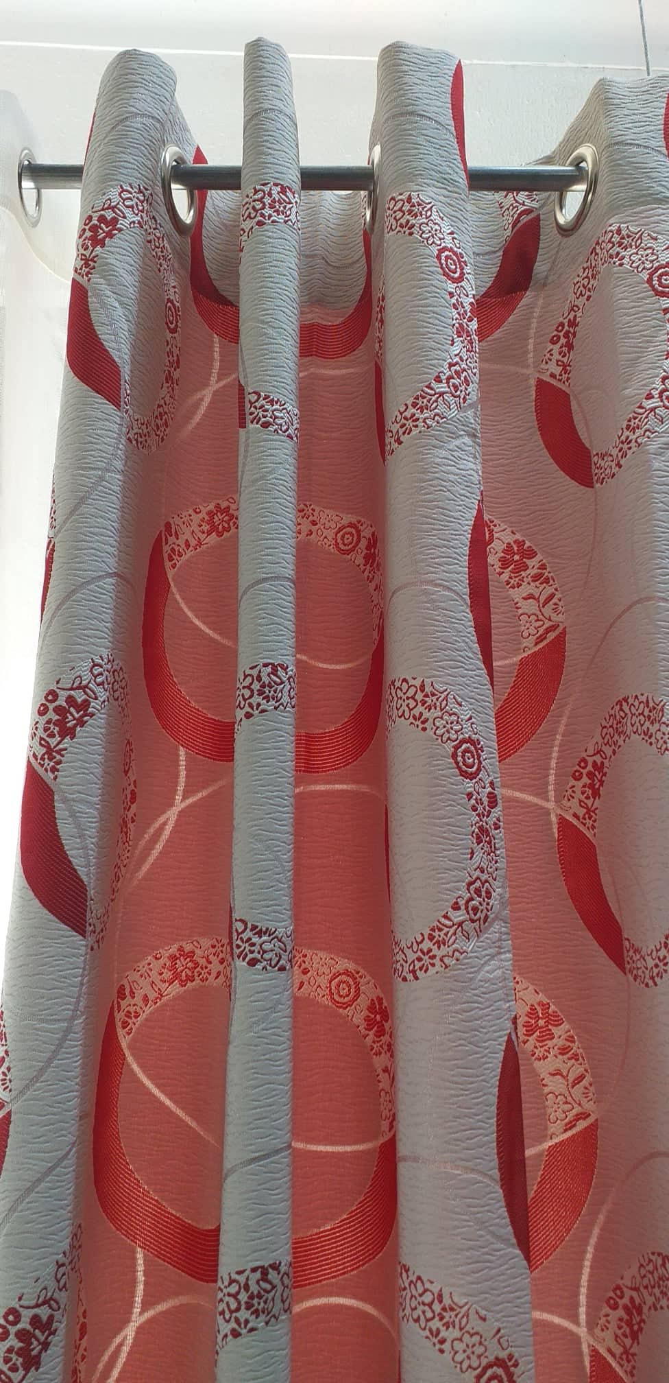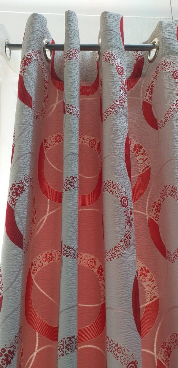 Par Cortinas Vermelho Bege e Prata – Galiano Fabricado em Portugal Cada Cortina mede 1.50*2.50m