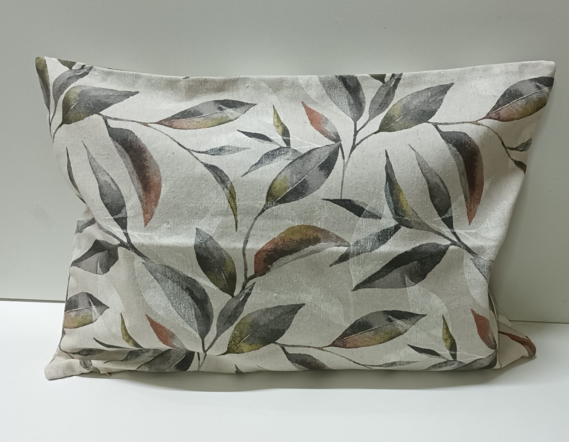 ALMOFADA BEGE COM PLANTA COLORIDA