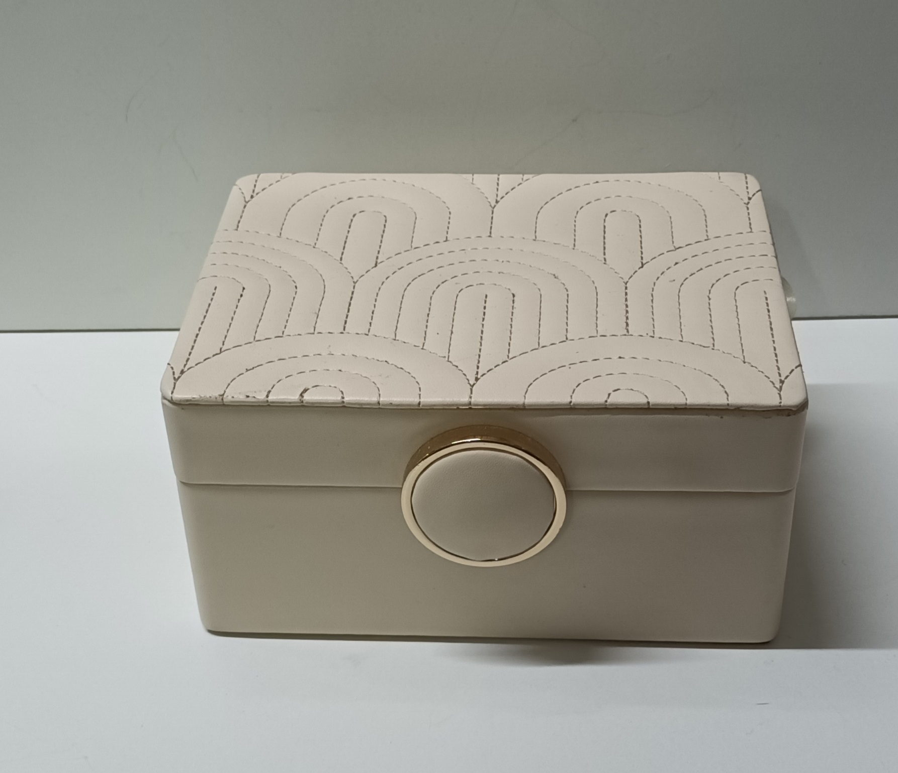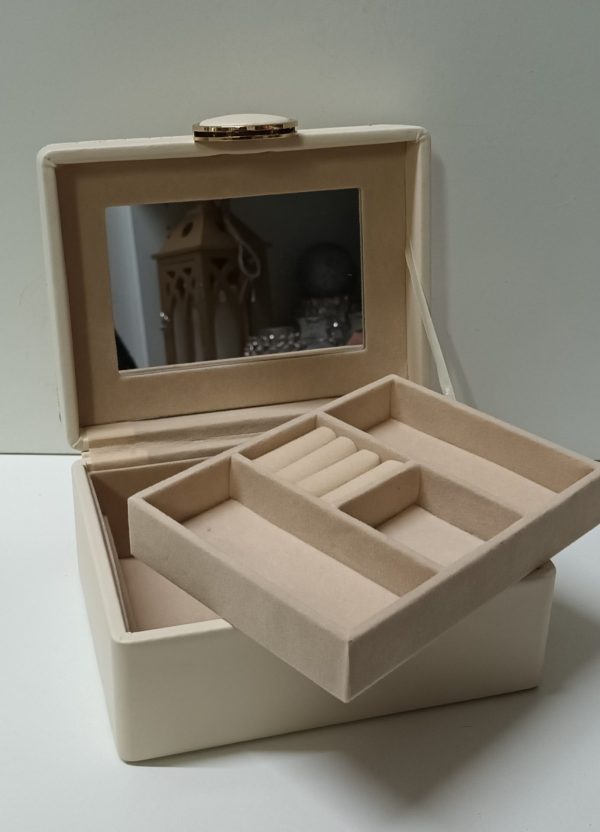 GUARDA-JOIAS BEGE COM ESPELHO POR DENTRO, 2 COMPARTIMENTOS, DA PARA METER ANEIS,BRINCOS E PULSEIRAS