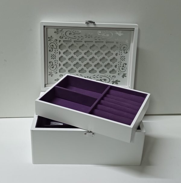 GUARDA-JOIAS BRANCO COM DUAS DIVISÕES DA PARA GUARDAR ANEIS, BRINCOS, PULSEIRAS E COLARES