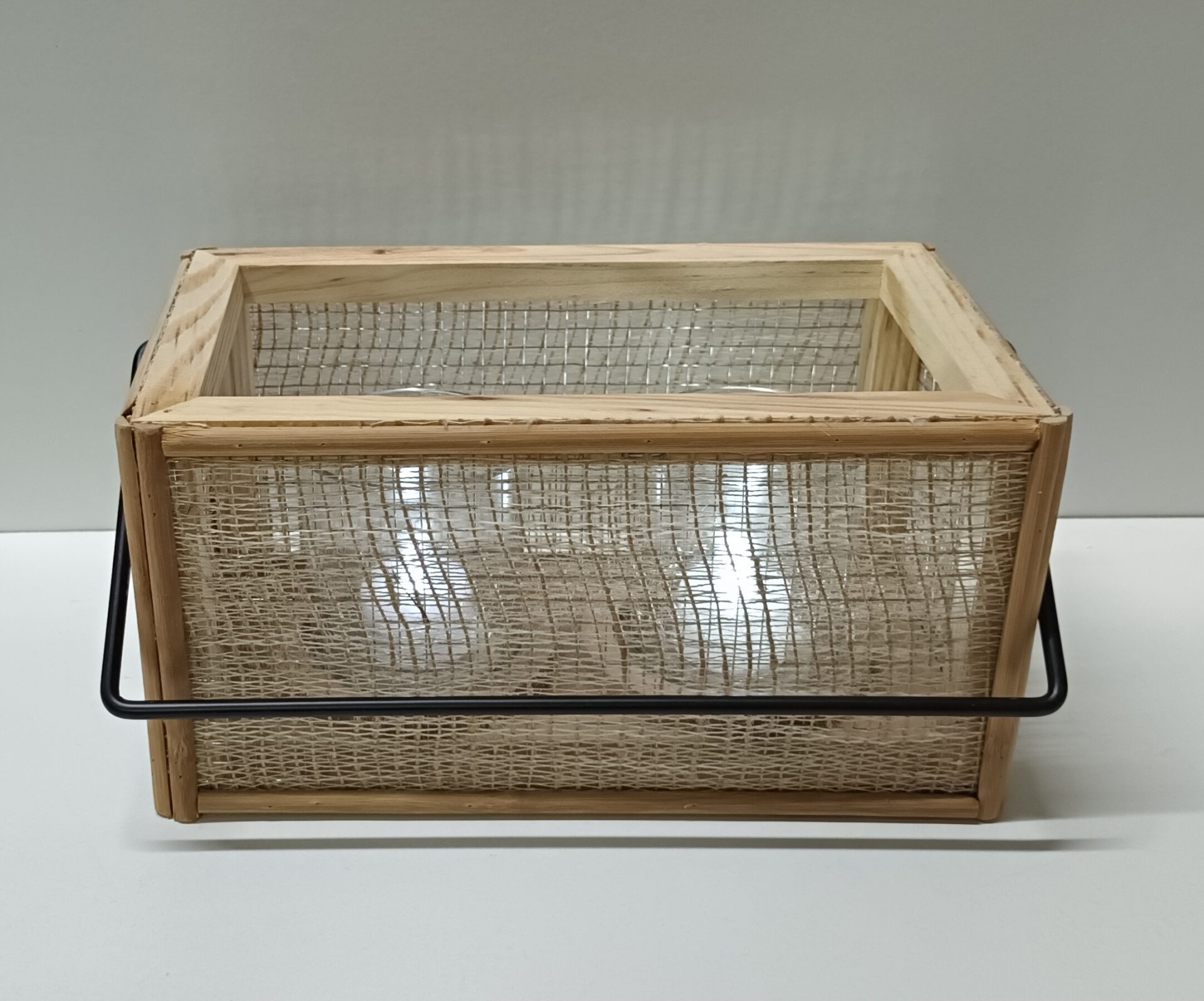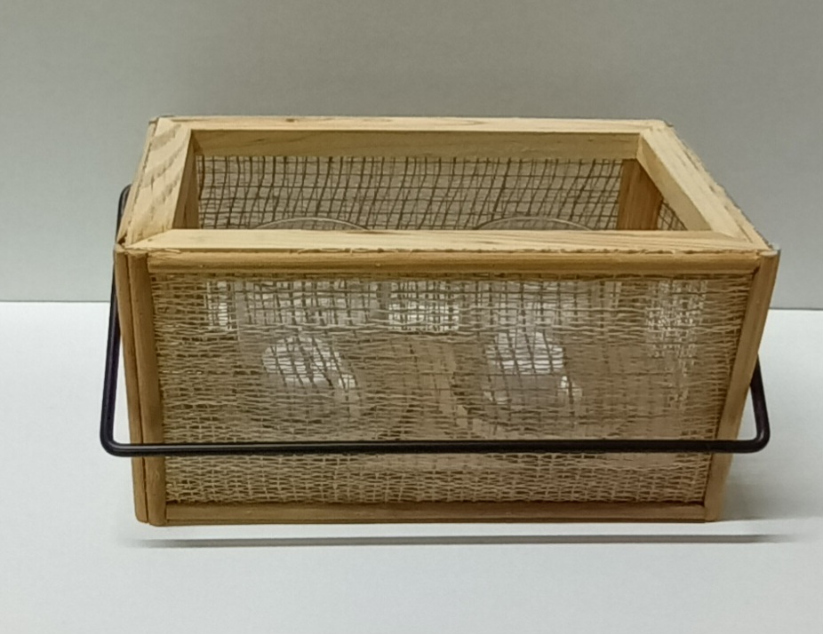 Lanterna Madeira c/ Alça Metal Preta c/ 2 Copos VIdro no Interior 11*24*14 Cm