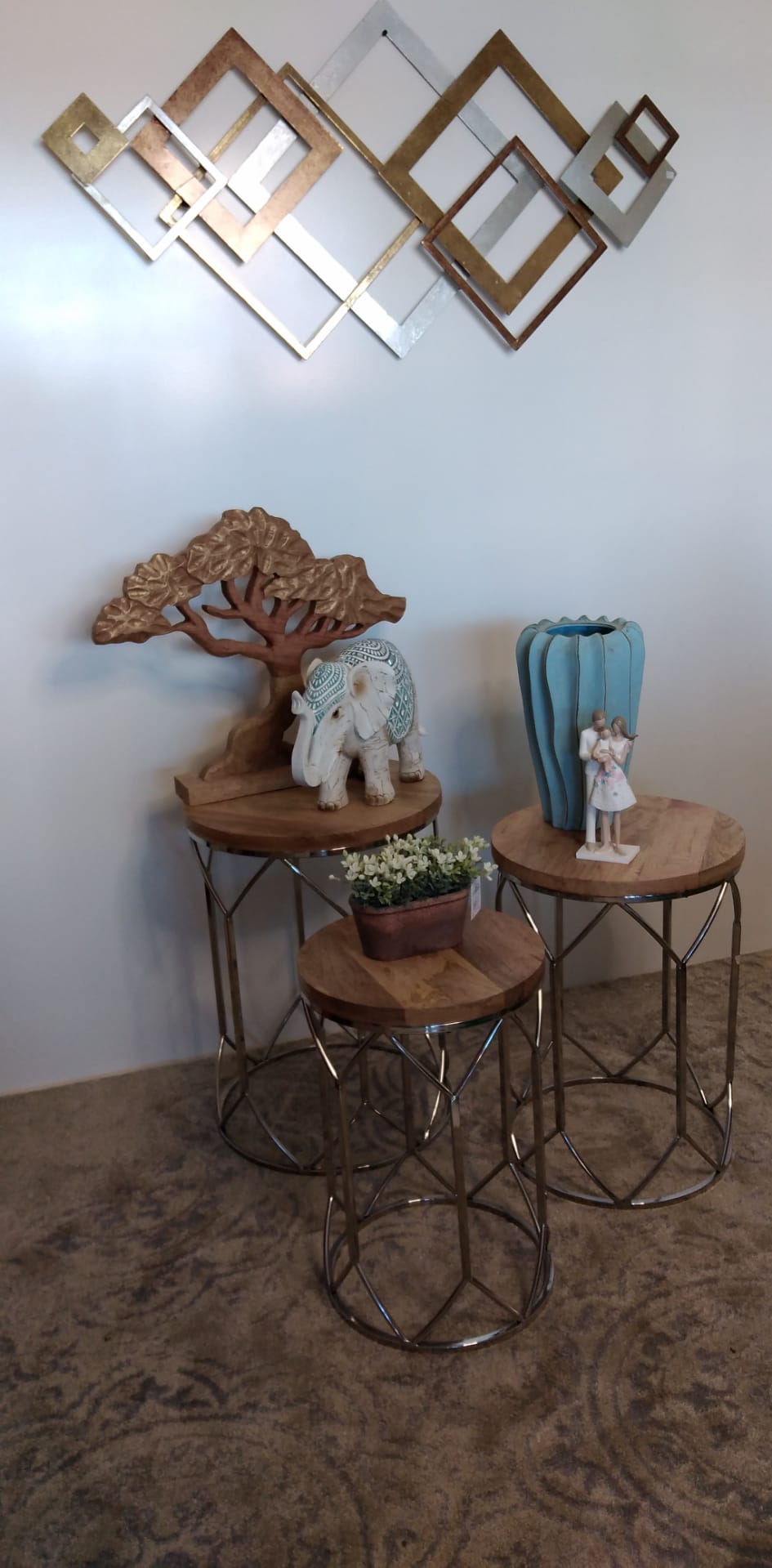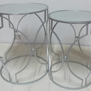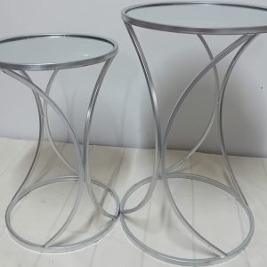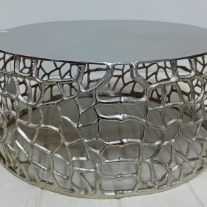 Mesa Apoio Metal Prateada com Tampo Madeira Md