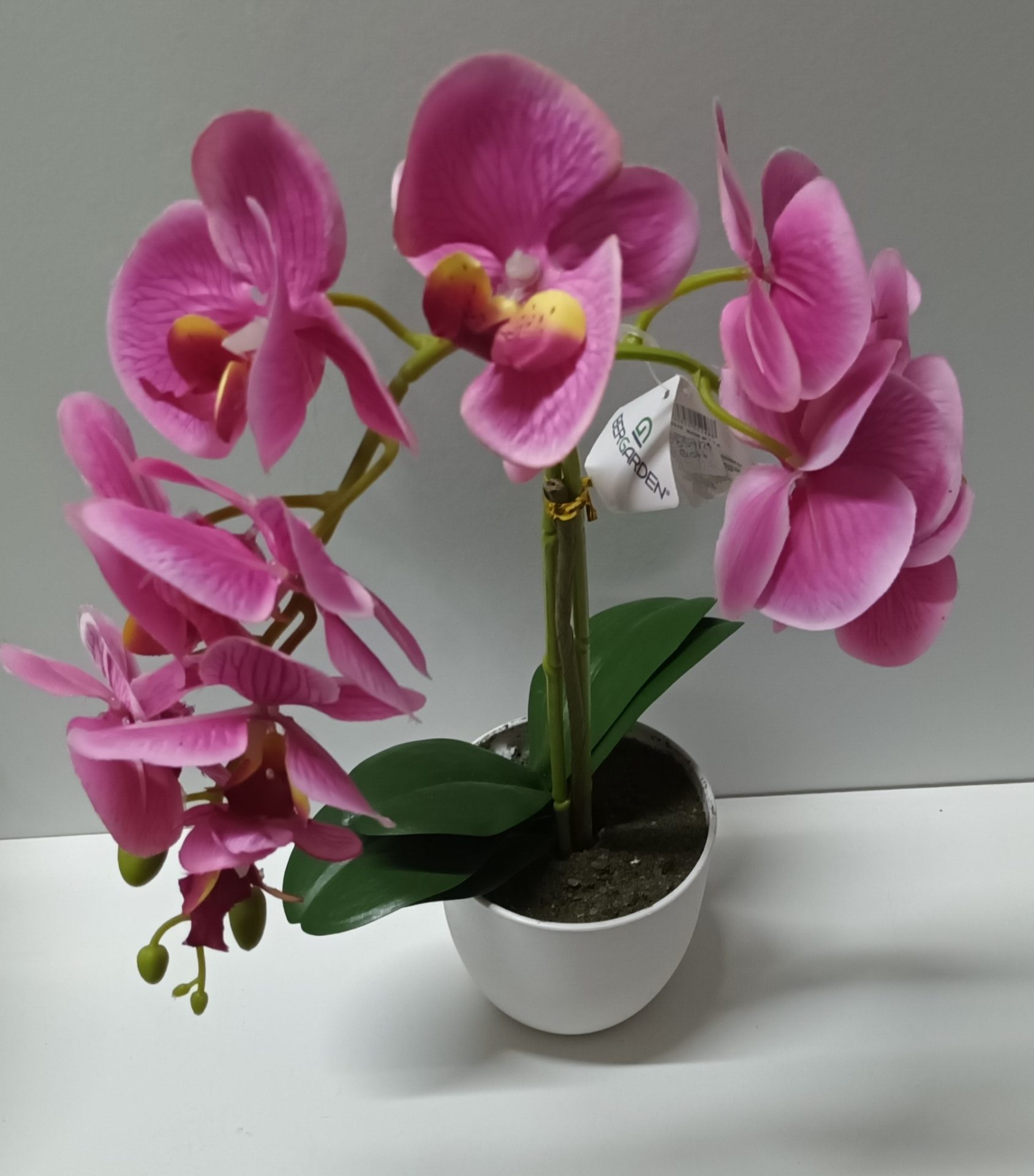 Orquídea Rosa com 2 Caules e Vaso Plástico Branco 45*23