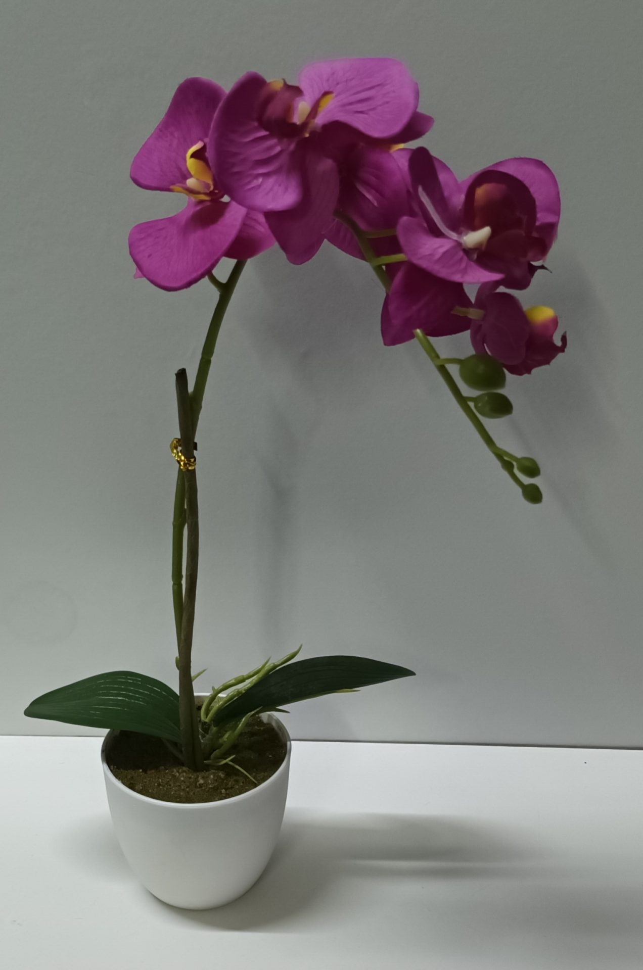 Orquídea Roxa com 1 Caule e Vaso Plástico Branco 45*23