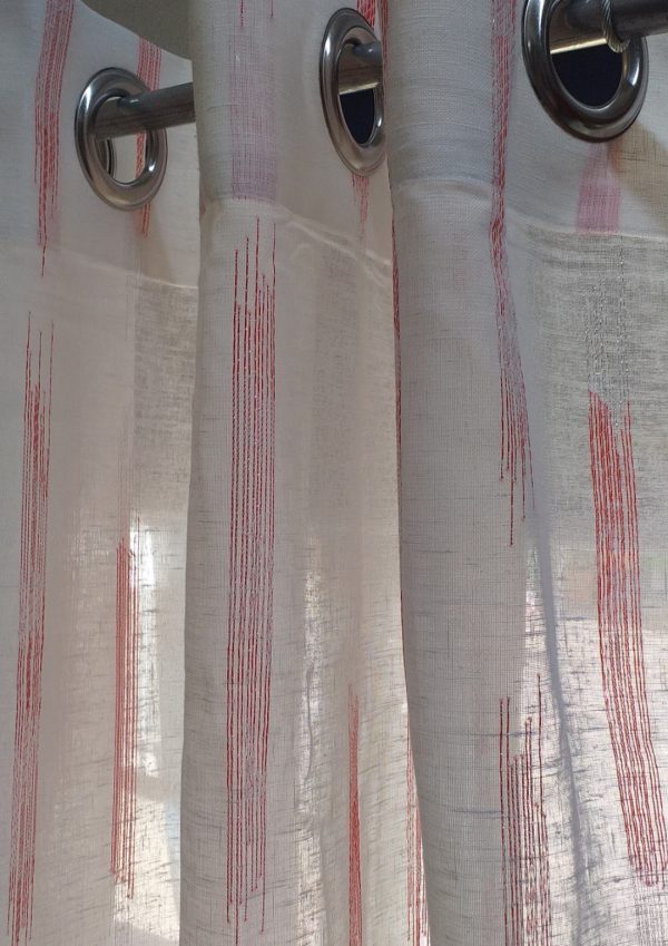 Par Cortinas Alinhadas Brancas Riscas Vermelhas e Prata (cada Cortina Mede 150*250) Fabricadas em Portugal