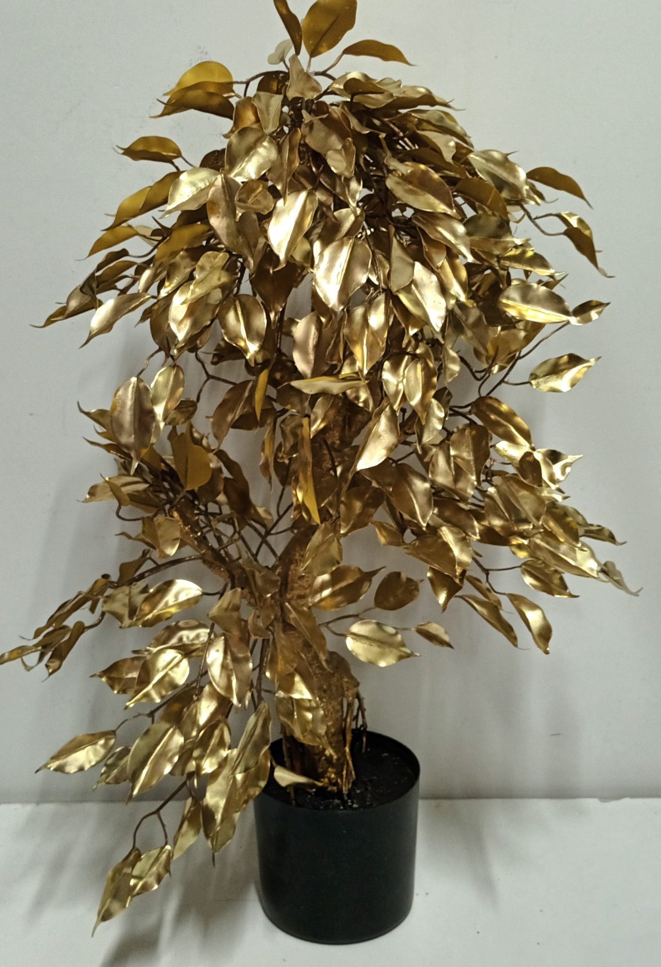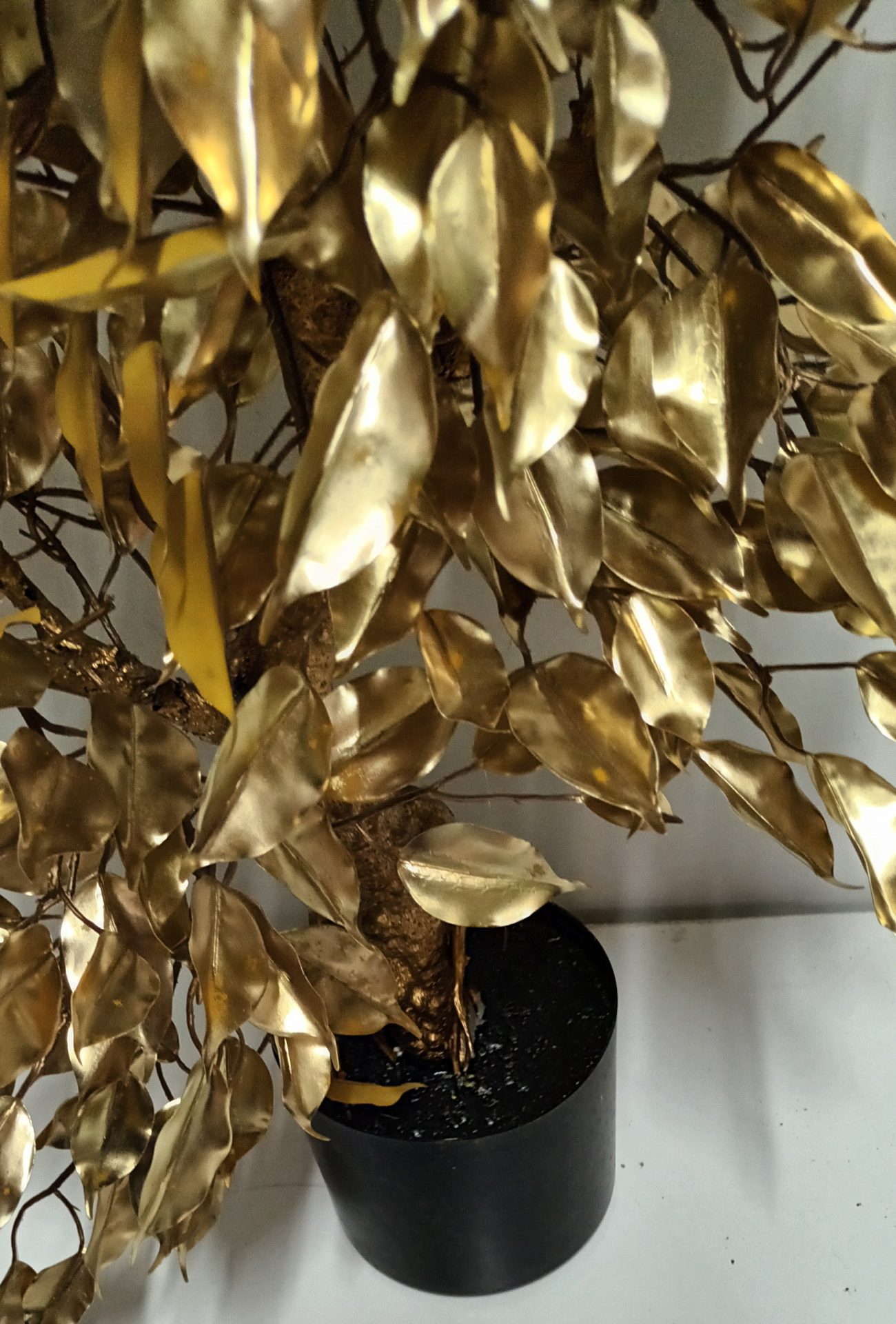 Planta Bonsai Dourada com Vaso Preto Plástico 70*40*81cm