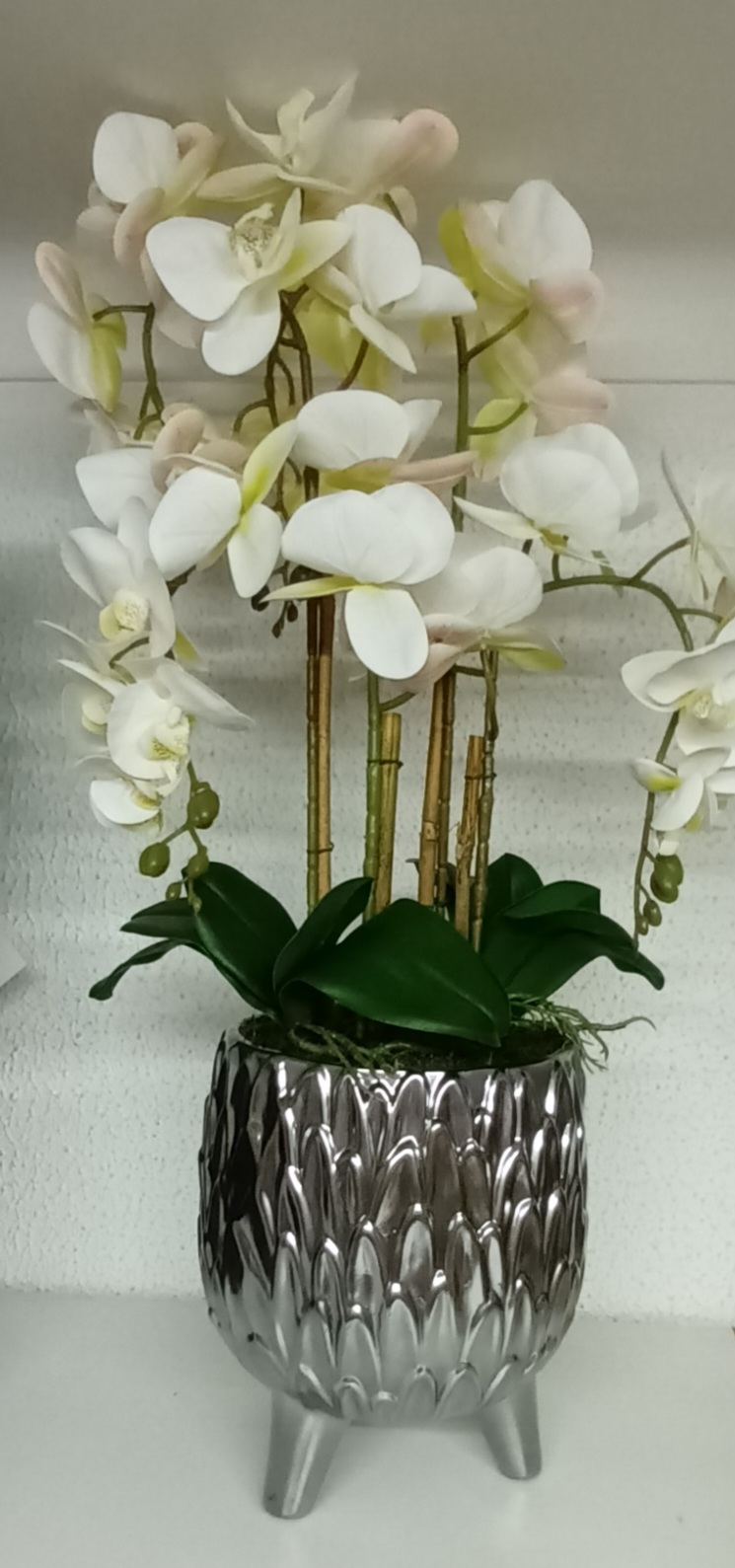 Planta Orquídea 4 hastes com Vaso Prata Cerâmica 80*30cm