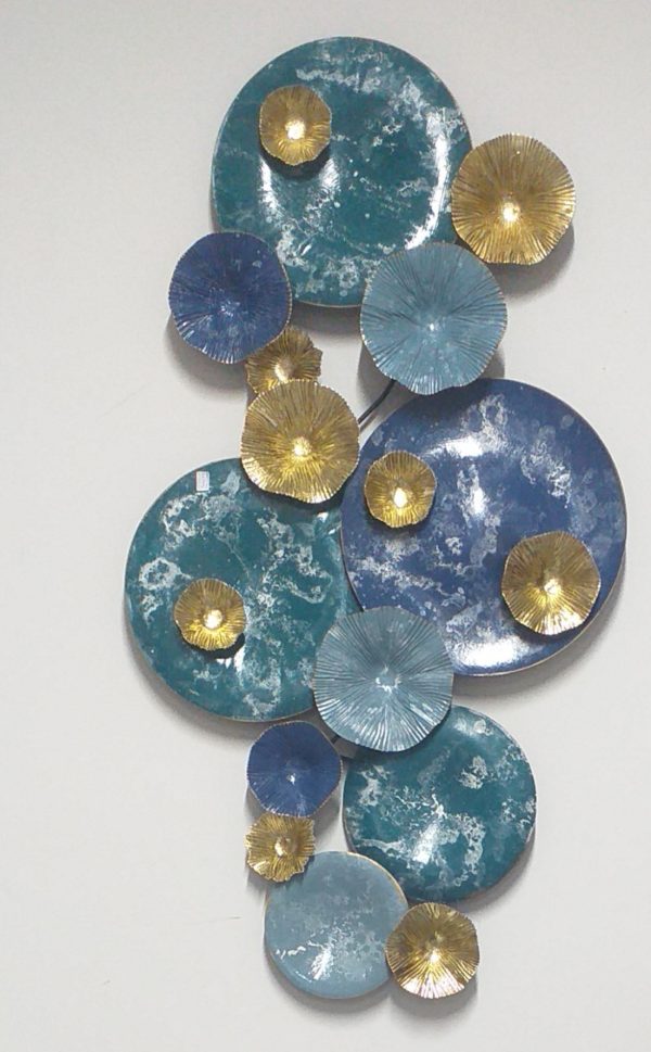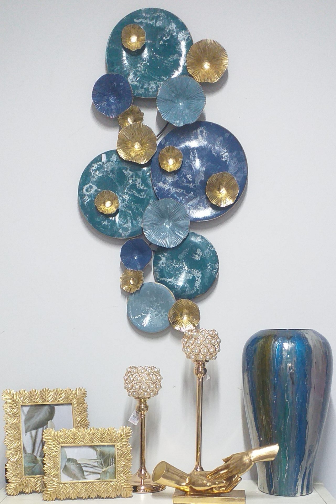 QUADRO EM METAL AZUL E DOURADO 91X50CM