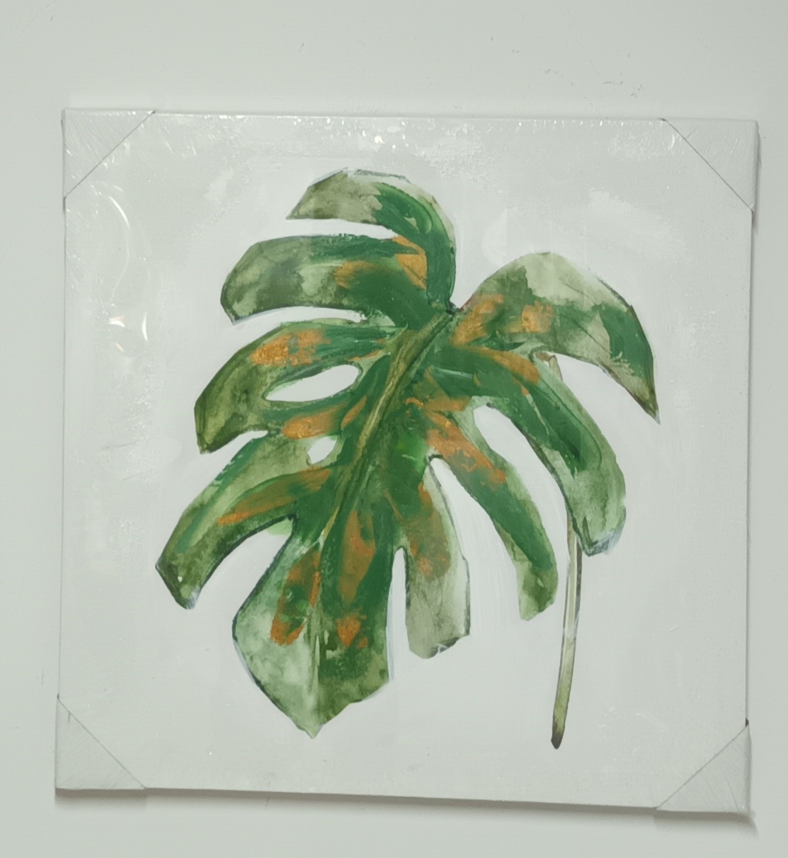 Tela Branca com Folha Verde c/ Dourado 60*60cm