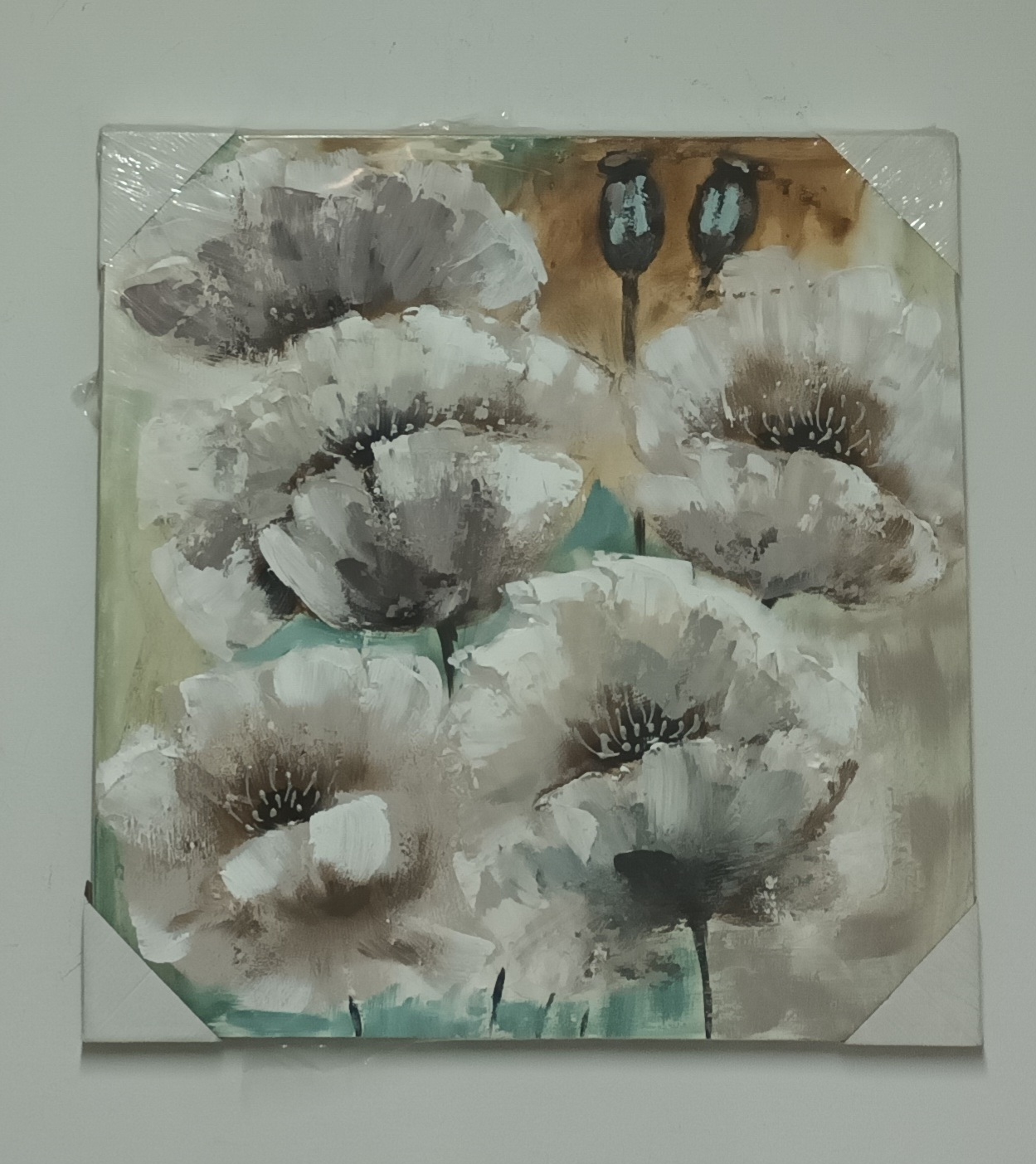 Tela Com Flores Papoilas Tons Castanhos com Azul Turquesa 60*60cm