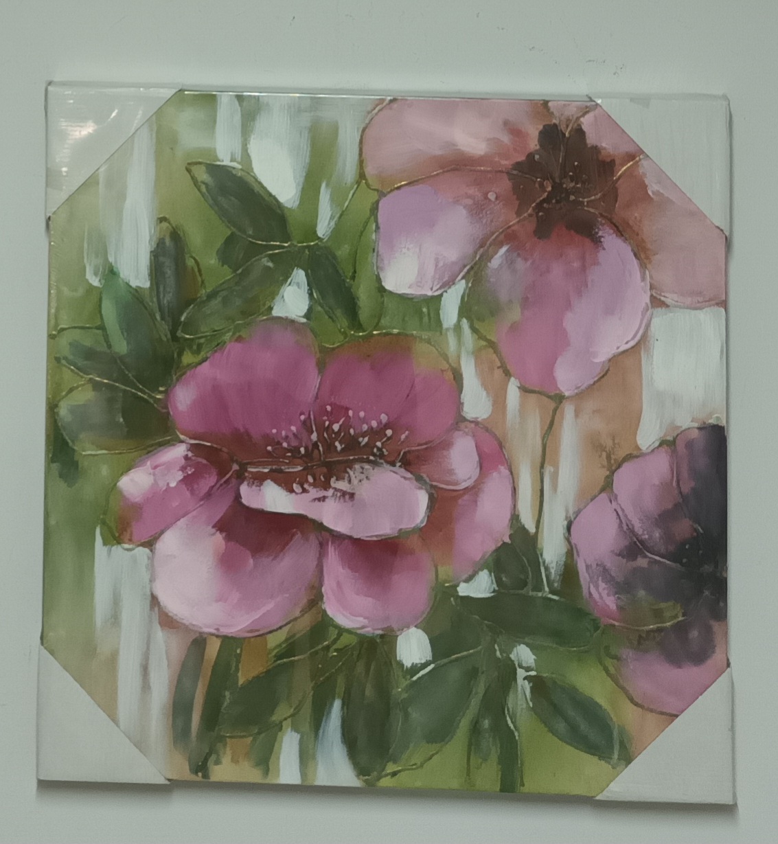 Tela Rosa Com Folhas Verdes 60*60cm