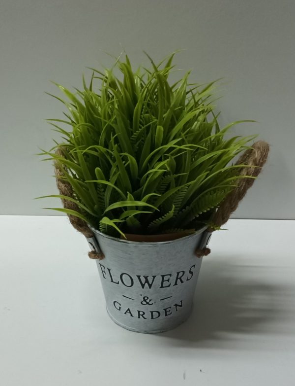 Vaso Metal Branco com Asa Corda e Verdes 24*17cm
