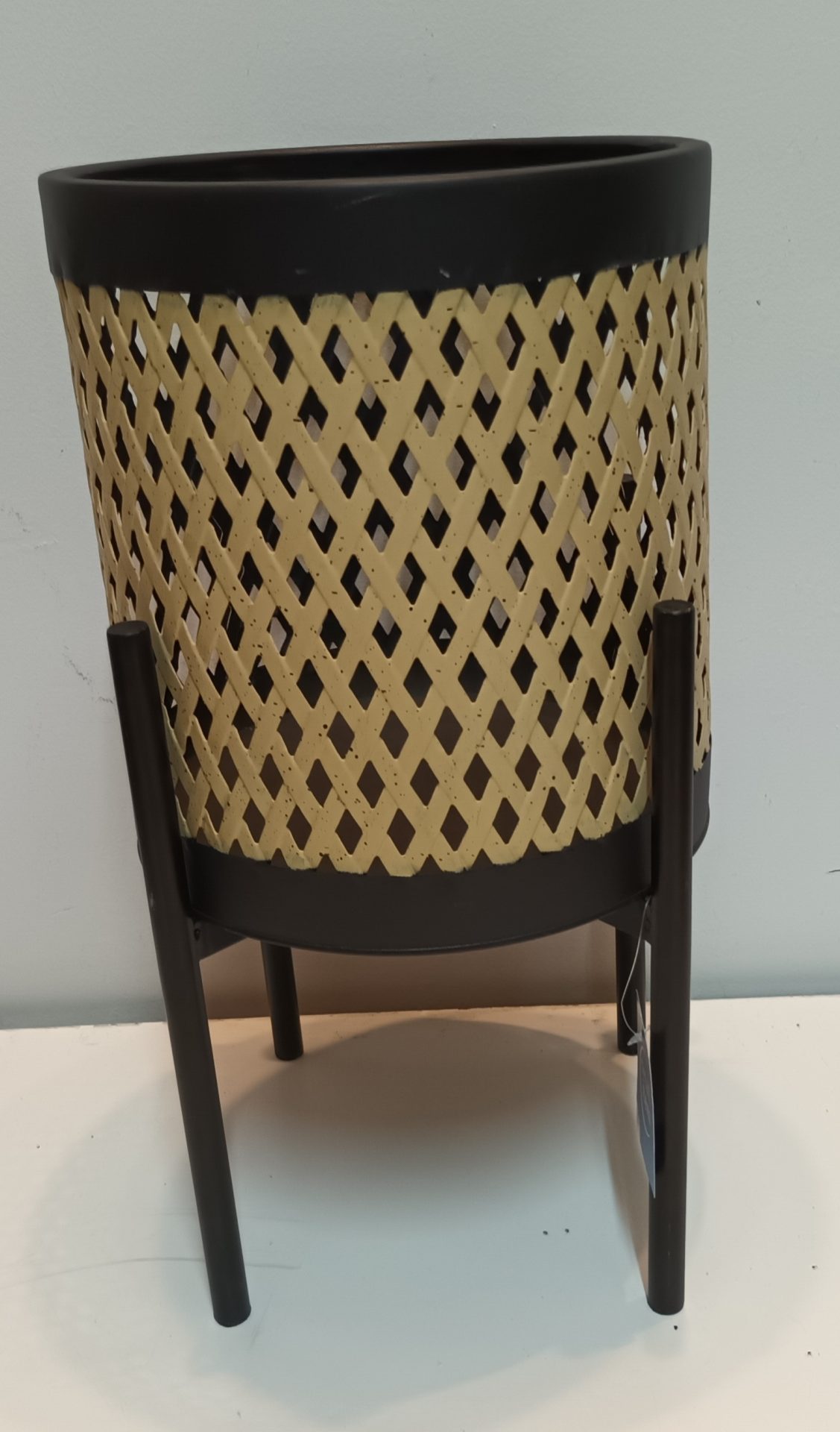 Vaso Metal Preto Com Entrançado Bege e Pés Pretos 27*50cm