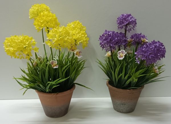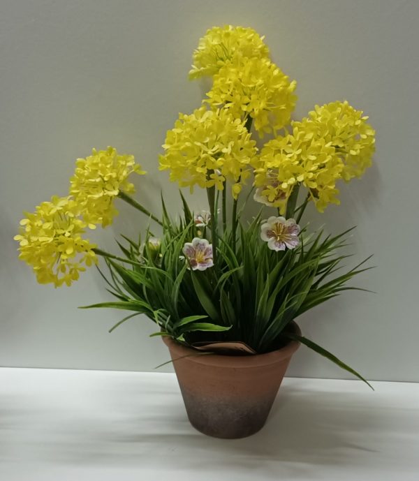 Planta com Vaso Barro e Flôr Amarela 38*27cm